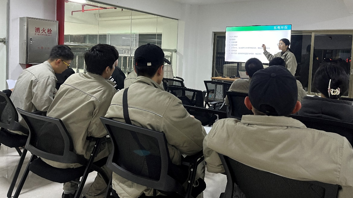 为改变东粤环保一线员工操作技能较为薄弱的现象,生产部技术骨干自发利用业余时间组织员工培训,有针对性地拔高每一位员工的操作技能和水平,目前,培训已经进行了二十余次,且将持续进行。
