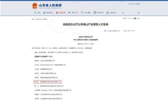 贺我公司董事长张新功当选为“泰山产业领军人才”