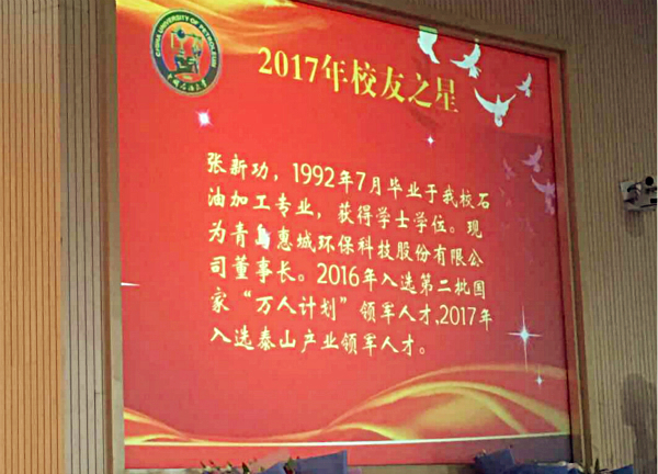 恭贺我公司董事长张新功被中国石油大学(华东)授予“校友之星”荣誉称号