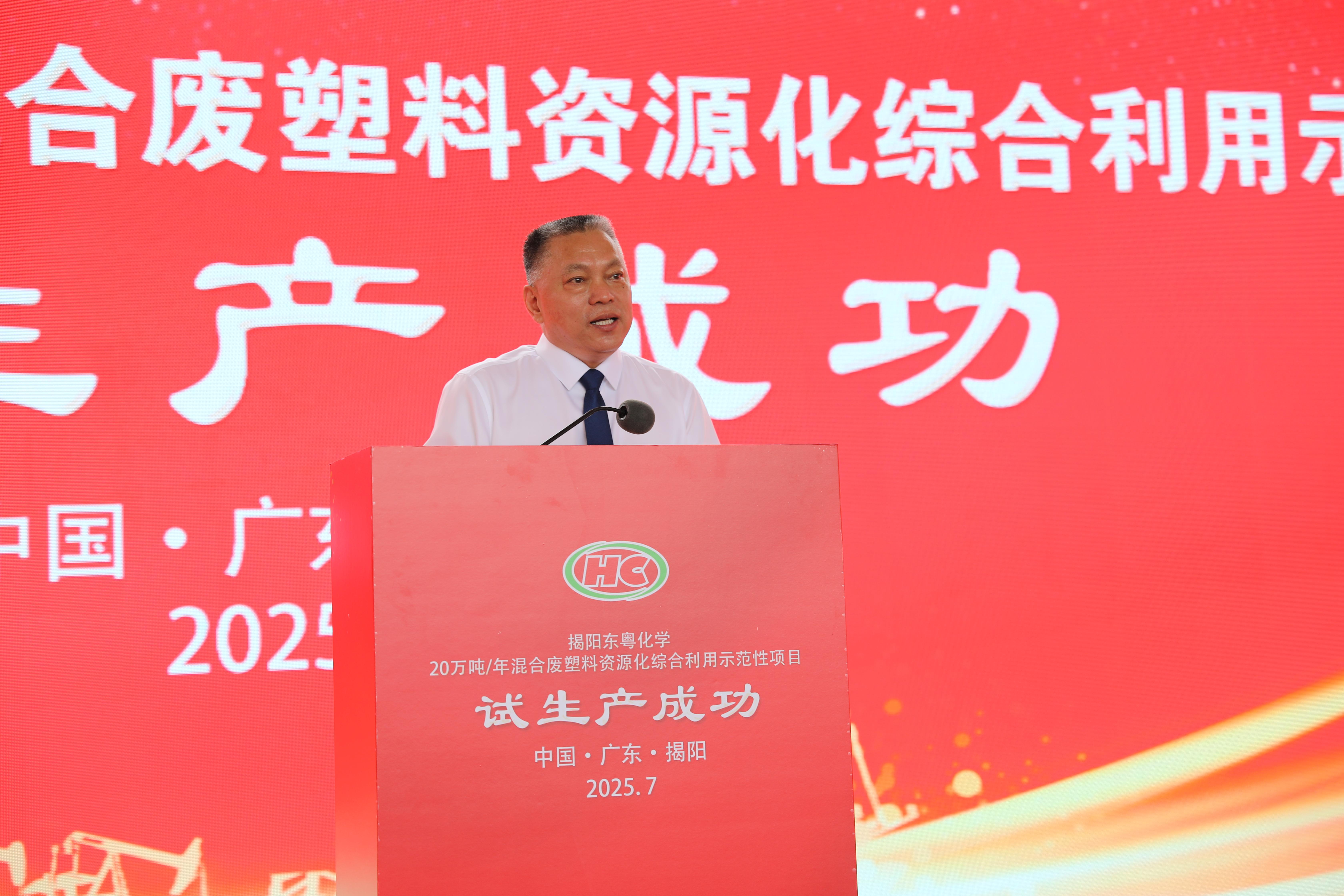 7月11日,惠城环保集团旗下子公司广东东粤化学科技有限公司(以下简称“东粤化学”)宣布,其投资建设的20万吨/年混合废塑料资源化综合利用示范性项目(以下简称“20万吨/年废塑料裂解项目”)试生产成功,标志着全球首创的混合废塑料深度催化裂解(CPDCC)技术成功通过工业化验证,实现全流程贯通,为解决全球塑料污染问题、构建资源循环体系提供了极具示范价值的“惠城方案 中国智慧”!