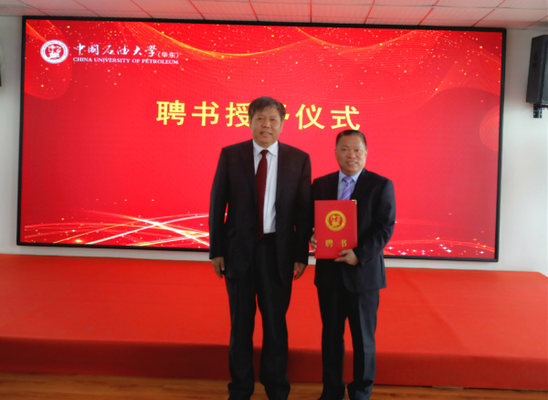 随后,郝芳校长代表中国石油大学(华东)向我司董事长张新功颁发兼职教授聘任证书。