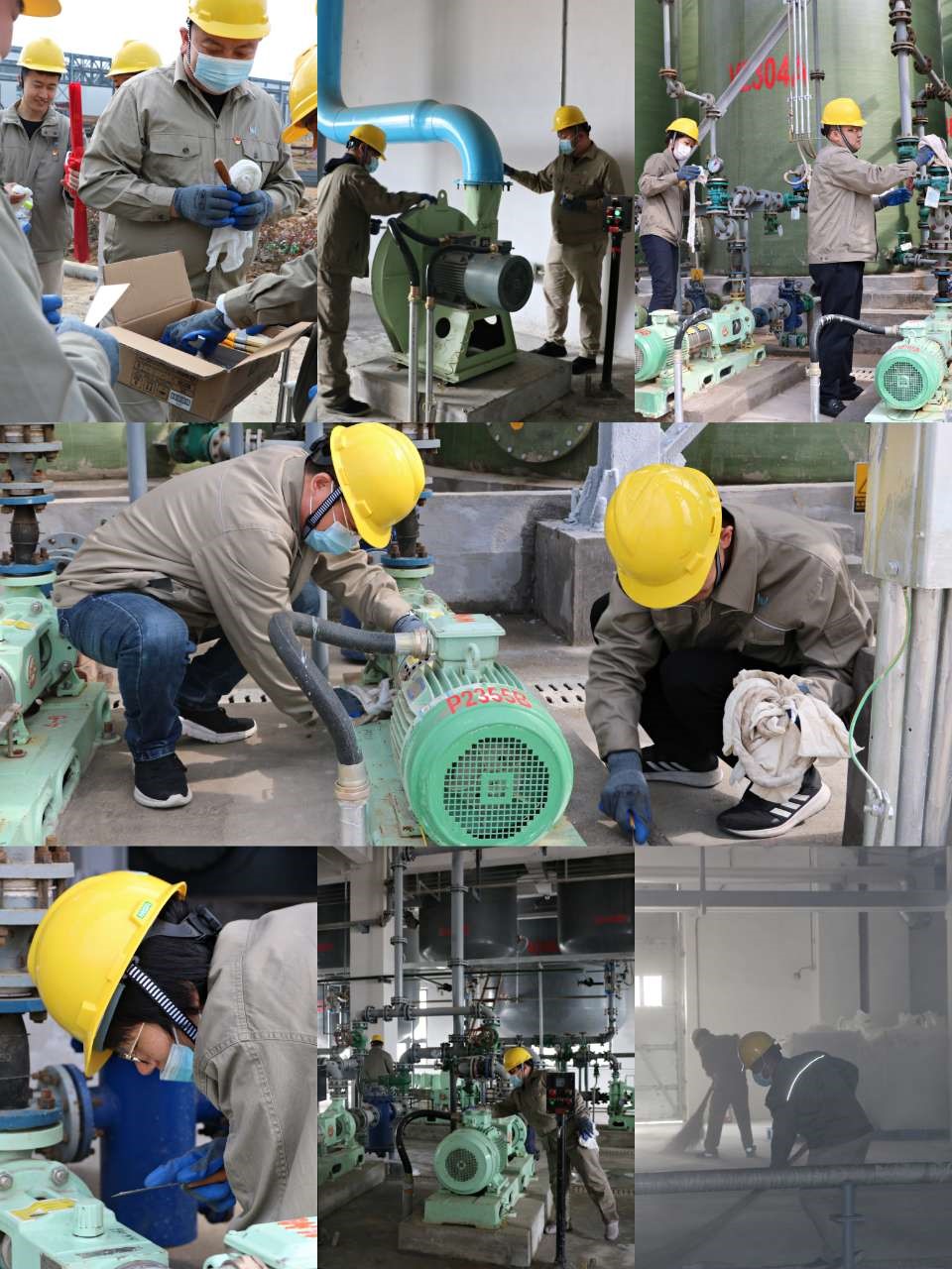 党总支领导强调完本次活动需要注意的安全事项和打扫标准后,全体党员兵分三路按照之前的分工,纷纷拿起抹布、铁铲、扫帚、毛刷,奔向清扫现场。车间设备旁、罐区中央都能看到党员同志们的身影,大家发扬不怕脏、不怕苦,不怕累的精神,不放过一个卫生死角。经过两个半小时的分工协作,厂区卫生得到很大改善。