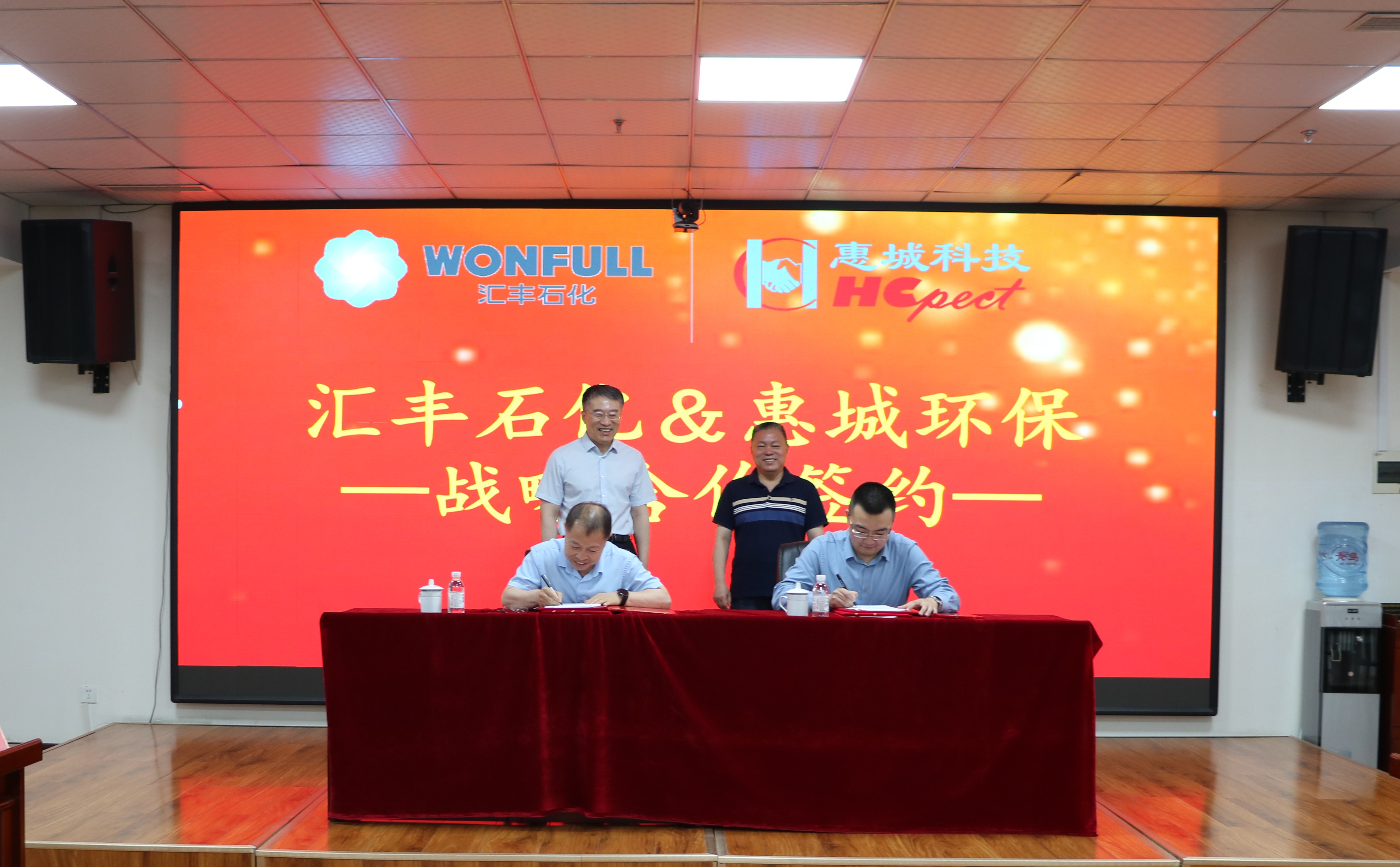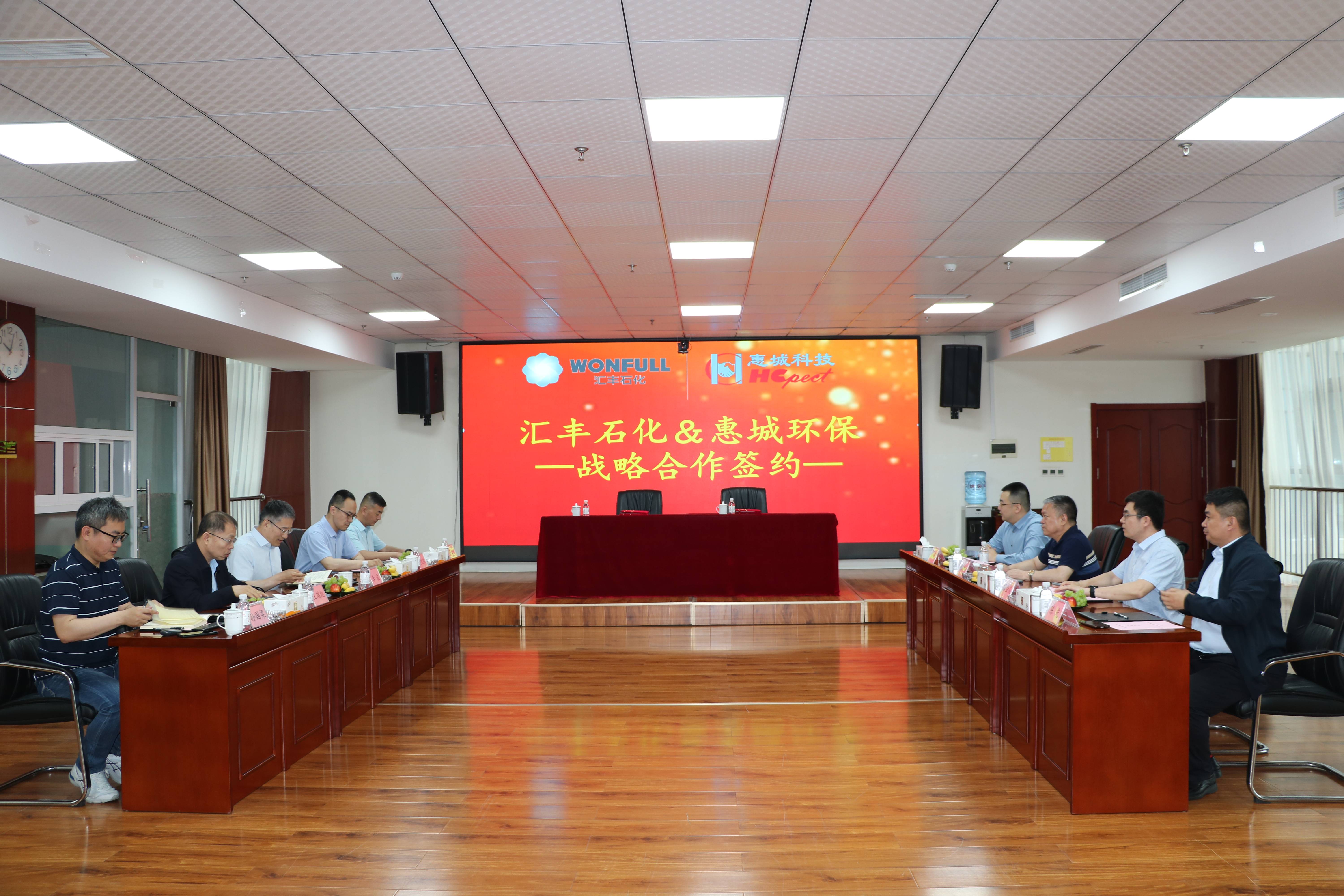 为进一步推动绿色循环经济高质量可持续发展,加快先进环保技术成果转化落地,5月18日,pc加拿大2.0网站(以下简称“惠城环保”)与山东汇丰石化集团有限公司(以下简称“汇丰石化”)战略合作签约仪式在惠城环保研发大楼418会议室隆重举行。汇丰石化总裁李波、总工程师王瑞旭,惠城环保创始人张新功、总经理林瀚等出席签约仪式。