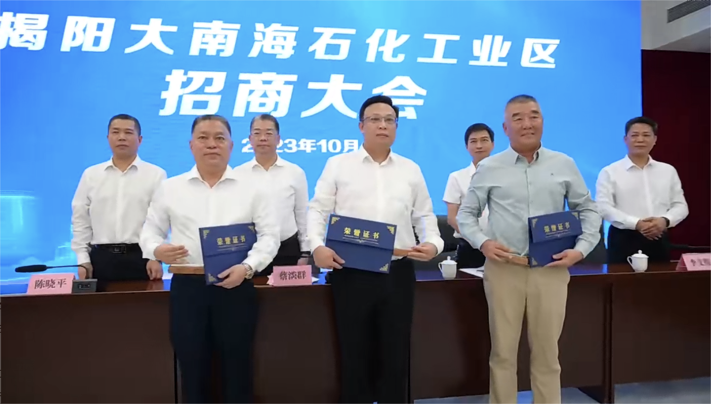 10月20日上午,揭阳大南海石化工业区招商大会顺利举行,以招商引资大突破助推发展动能大提升。揭阳市委常委、副市长、大南海石化工业区党工委书记蔡淡群,大南海石化工业区党委副书记、管委会主任陈晓平等出席会议,惠城环保集团创始人张新功受邀出席并被聘任为招商大使。