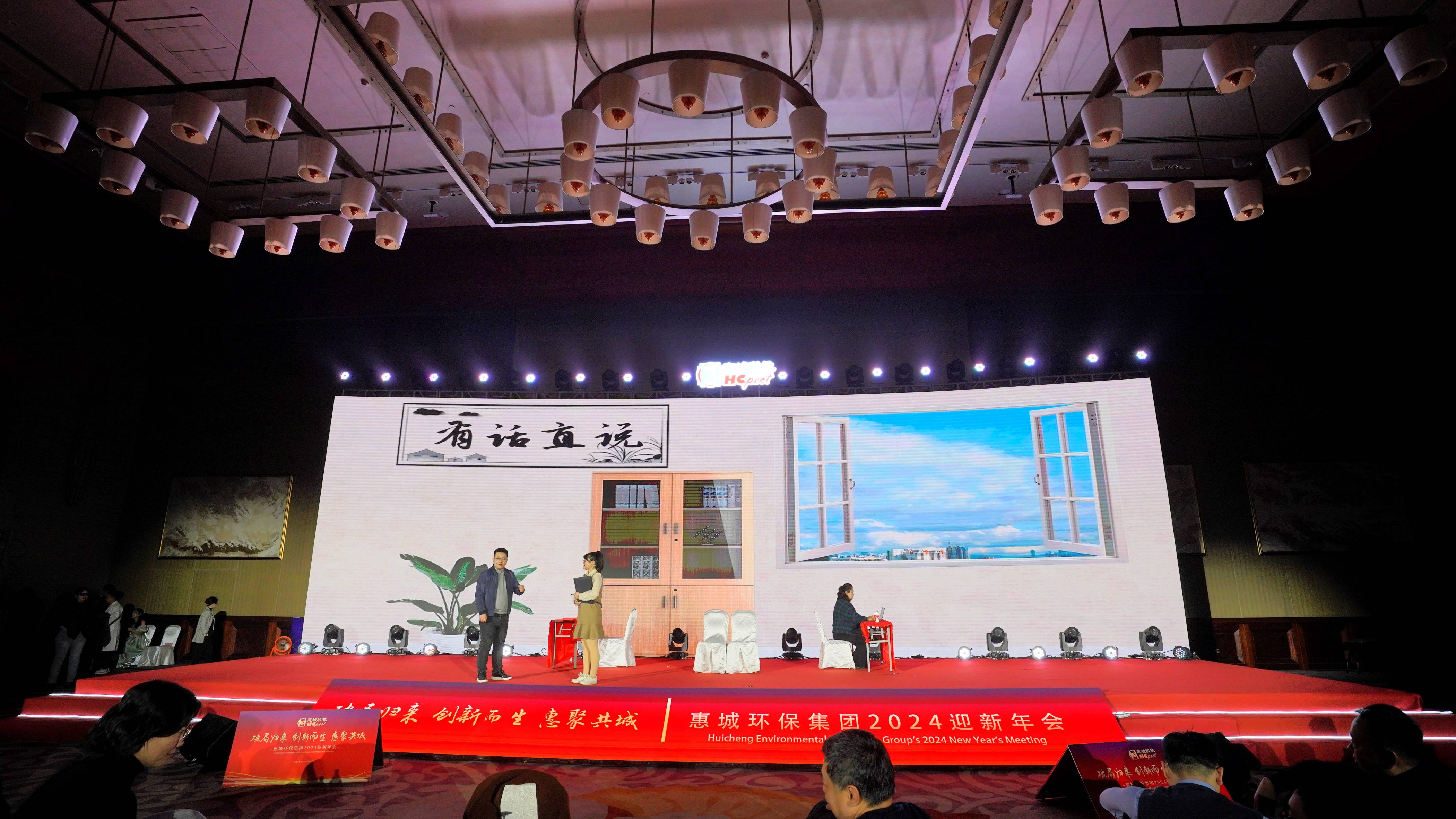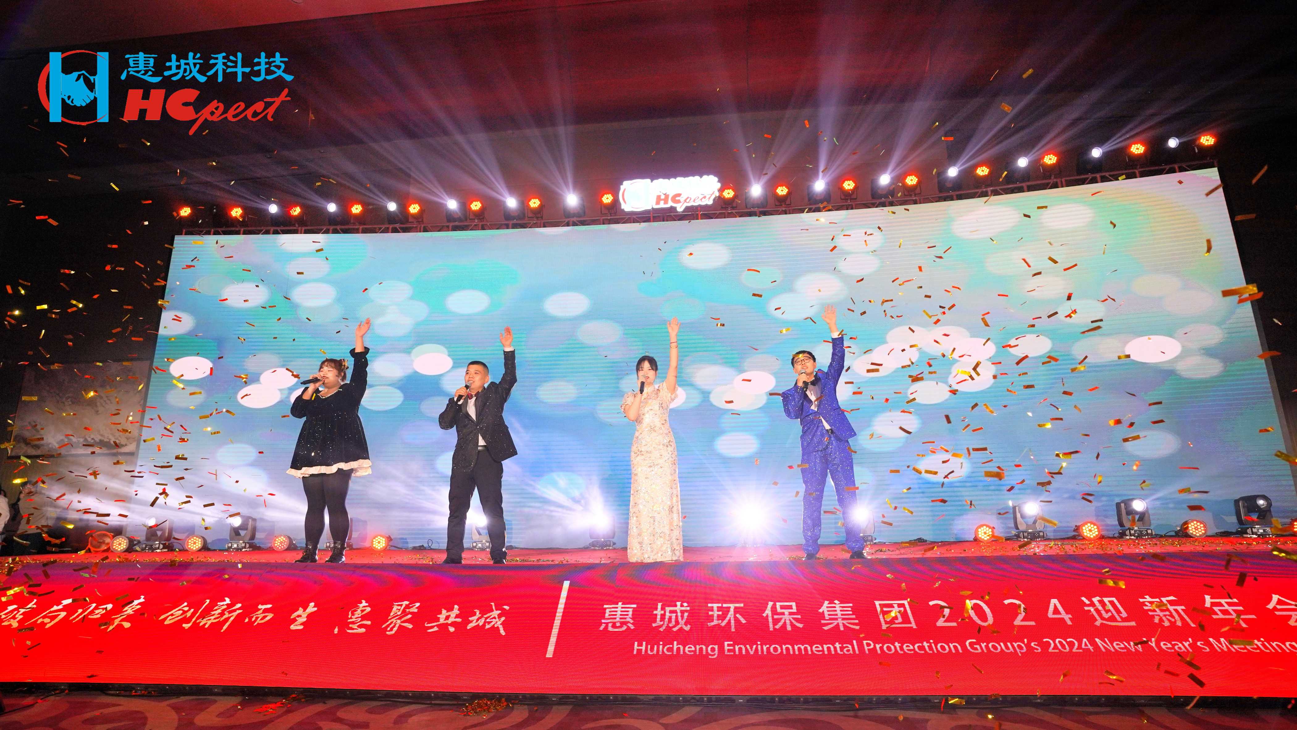 2024年2月4日,“破局归来 创新而生 惠聚共城”惠城环保集团2023年总结表彰大会暨2024年迎新年会在青岛金沙滩希尔顿酒店主会场隆重召开,会议采用线上线下结合的方式,集团外围各子公司、合作伙伴及社会各界共同通过视频直播同步观看晚会的盛况。会议中,惠城环保集团创始人张新功、高管团队、特邀嘉宾以及各子公司员工代表共500余人欢聚一堂,共忆奋斗往昔、共学优秀榜样、共话惠城未来、共赏精彩表演、共品美味佳肴,度过了一场难忘而美好的盛会。