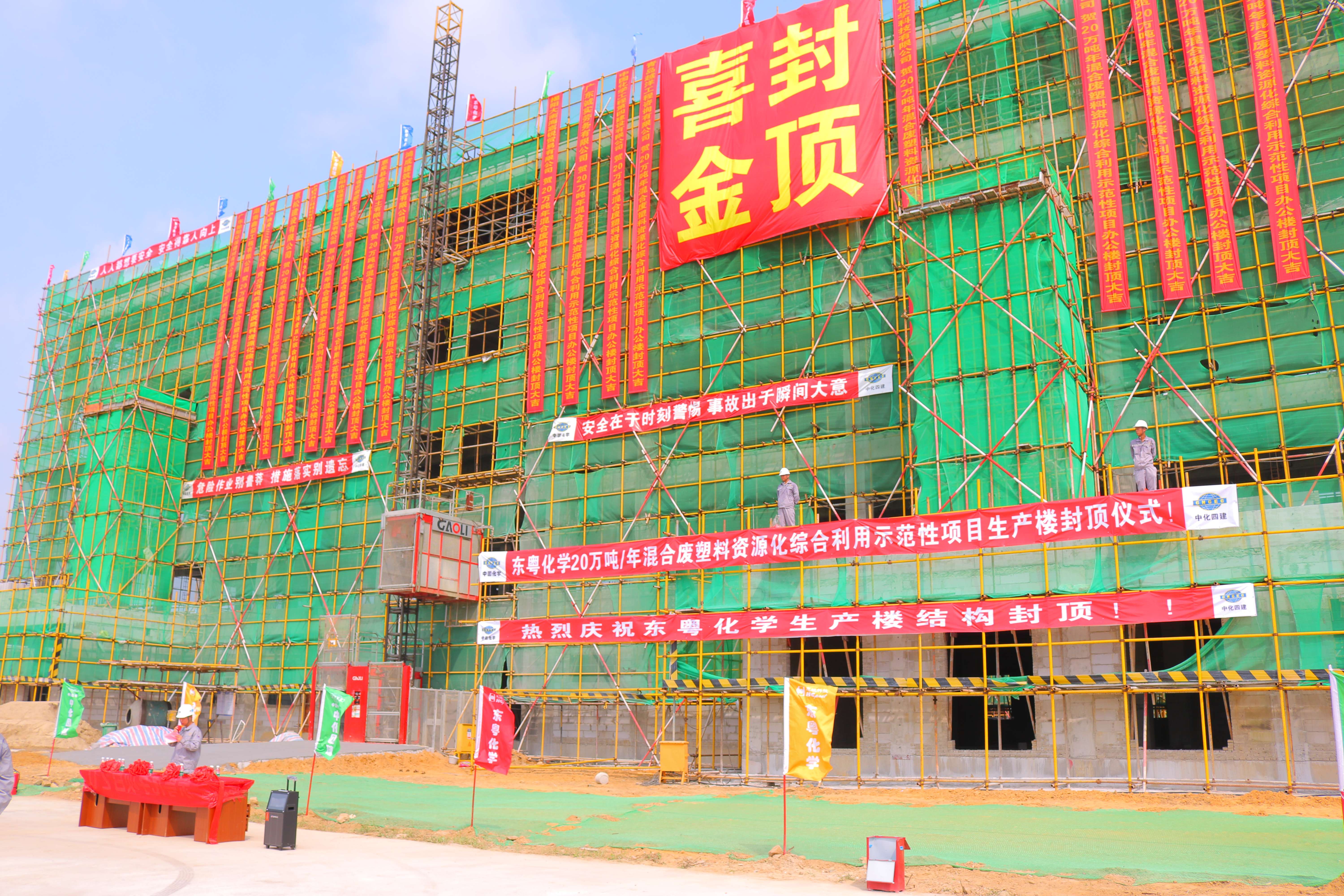 时风澍雨酿花天,吉日良辰喜报连。8月8日,随着最后一段顶板混凝土完成浇筑,20万吨/年混合废塑料资源化综合利用示范性项目办公楼结构喜封金顶,标志着项目阶段性节点顺利完成,为年底建成投产奠定了坚实基础。惠城环保集团子公司广东东粤化学科技有限公司总经理李恩泉、中国化学工程第四建设有限公司华南分公司党委书记寻飞跃、广州石化建设监理有限公司总监理工程师盛筠等领导出席封顶仪式。