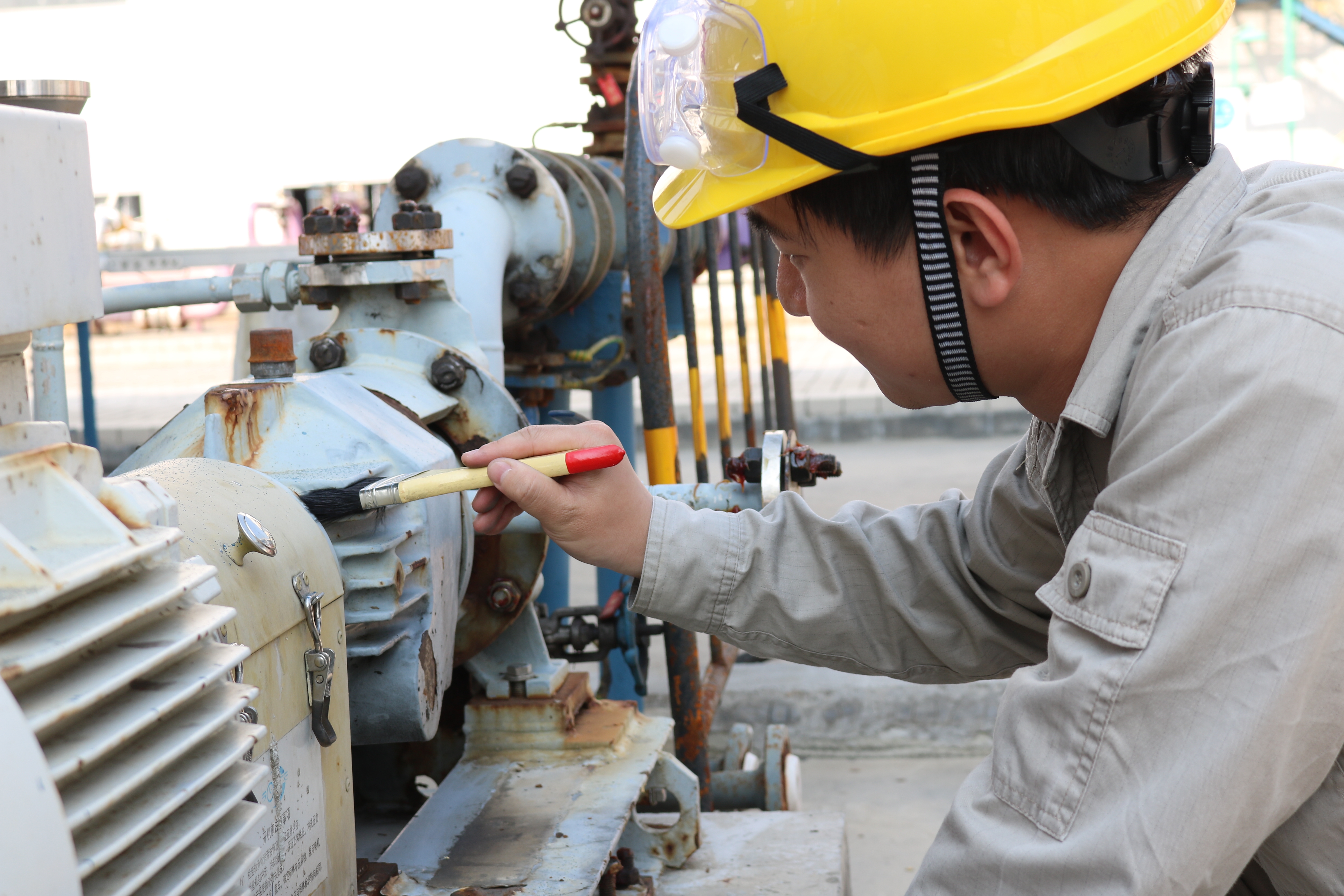 生产运行一部储运车间主管陈奕良注意到现场机泵小缝隙存在污迹、油渍且较难清理,他尝试将重油污清洗液、洗洁精和洗衣粉加水调和后,根据机泵缝隙大小搭配使用牙刷、毛刷、钢刷,俯下身仔细清洁每一个小角落里的污渍,除油污效果明显,于是他将这个方法从储运车间推广到其他车间,厂区机泵焕然一新。