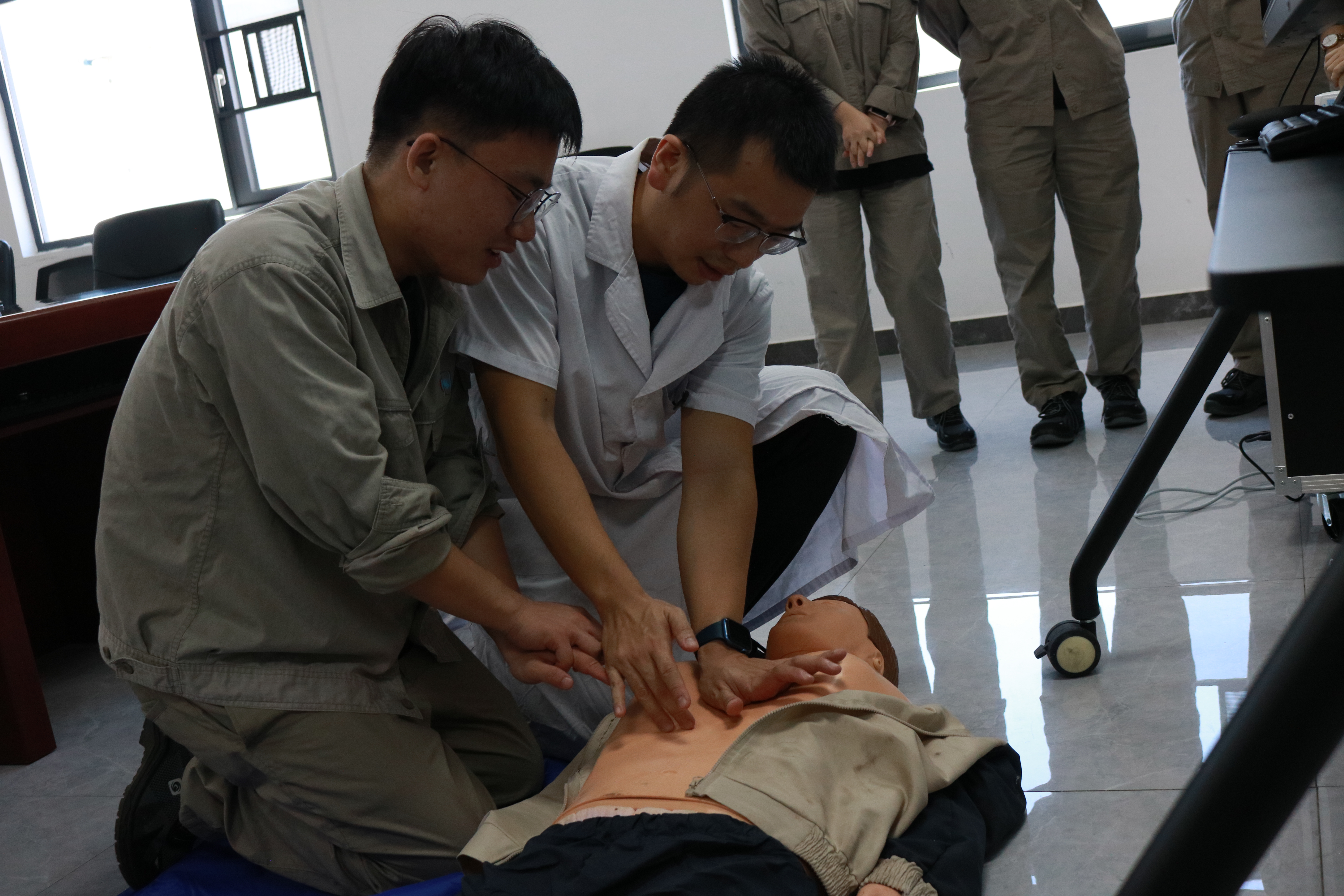 理论讲解结束后,进入模拟操作和现场指导环节。陈宏主任用模拟人演示了完整的CPR流程,随后,员工们进行实操练习,陈宏主任悉心指导每位员工的操作,对不规范的动作进行耐心的示范和纠正,员工及时规范急救动作,反复操作,直到掌握正确方法。