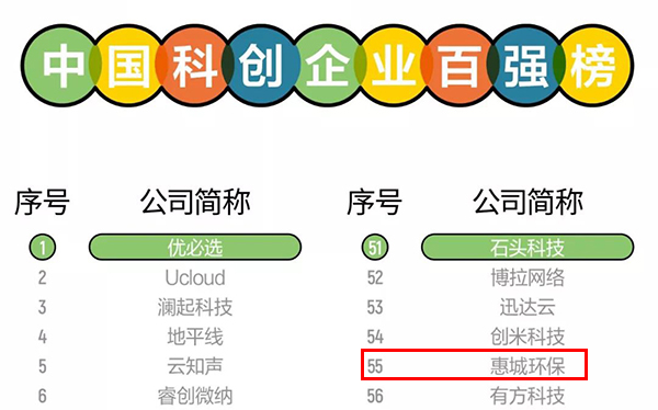 近日,《中国企业家》发布“科创企业百强榜”, 我公司青岛惠城环保科技股份有限公司位列其中。 中国科创企业百强榜是从科技实力、投资价值、成长价值三个方面筛选出的优秀科技百强企业,该榜单的高含金量为行业和资本市场树立了投资风向标。 此次获奖,是对惠城环保科技创新带来的高成长和投资价值的认可,不论在成长速度还是发展潜力上,惠城环保都堪称是一颗耀眼的科创之星,无愧于“2019中国科创企业百强”的称号。未来,惠城环保将继续依靠雄厚的技术实力和高素质的研发队伍,专注产品研发,持续技术创新,使惠城环保这一品牌价值不断提升。[ 查看更多 ]
